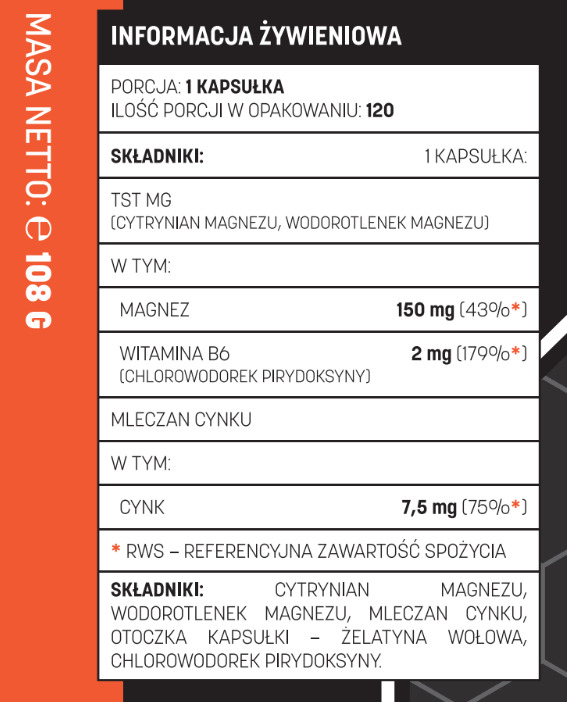 Testosterone.pl ZMA to suplement diety zawierający w swoim składzie: